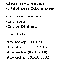 - speichern der Kontaktdaten im vCard-Format in der Zwischenablage, einer Datei oder direkt in einer E-Mail zum Versand