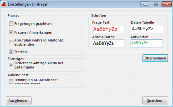 Die Maske zur Duchführung von Umfragen kann jeder Benutzer in vielen Punkten seinen Vorstellungen entsprechend anpassen. Dies erfolgt in dieser Maske.
