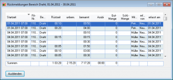 Über diese Schaltfläche können Sie eine Liste aller Rückmeldungen zu einem Bereich in einem Intervall abrufen. Klicken Sie dazu auf eines der Felder in der Ergebnistabelle und dann auf diese Schaltfläche.