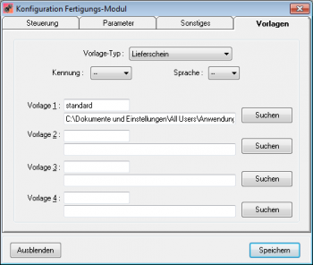 In diesem Reiter definieren Sie die Vorlagen für den Ausdruck von Fertigungs-Aufträgen und Lieferscheinen.