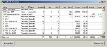 Über diese Schaltfläche kann für eine durch einen Mausklick ausgewählte Kampagne die Liste aller damit gewonnenen Kontaktpersonen geöffnet werden.