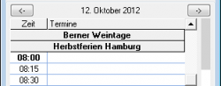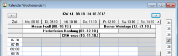 Mit dieser Maske verwalten Sie solche Kalender-Notizen, die als öffentlich oder privat markiert werden können. Kalender-Notizen werden bei den verschiedenen Kalender-Ansichten direkt unter den Spalten-Überschriften angezeigt (siehe Beispiele weiter unten).